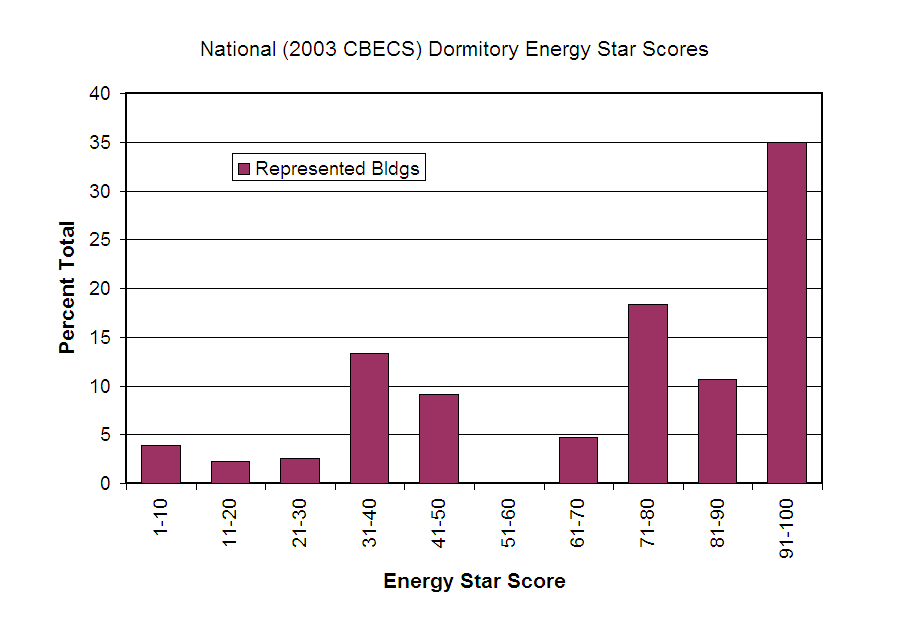 The current version of the Office Model used office building data from the 2003 CBECS to define its parameters — that is, model parameters were obtained from a regression applied to office building data extracted from CBECS 2003. Therefore these data cannot be used to independently verify the distribution of Energy Star scores in the building stock.